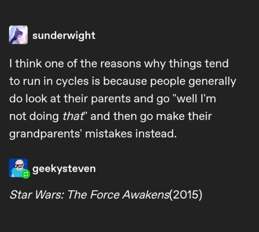 Also people give The Last Jedi way more hate than it deserves. It had interesting themes and the plot wasn’t totally predictable. It’s easily my favorite of the three.