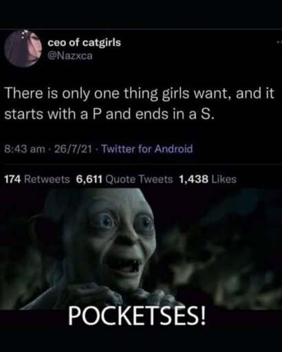 This is a big reason that young women feel like they have a lot of pressure to get married to a wealthier man that has the resources to have pockets, or if they can’t find one, settle for one that has at least a decent hoodie. I feel like a lot of them wouldn’t bother if they didn’t have to rely on the pockets of men.