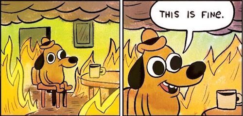 mudkip@lemdro.id to Memes@lemmy.mlEnglish · 29 days agoThis Is Fine: When everything is on fire but I'm calmlemmy.mlimagemessage-square5linkfedilinkarrow-up136arrow-down124