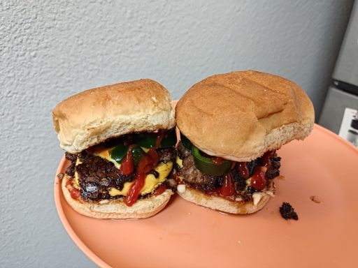 I definitely feel like centering the burgers on the plate and taking the picture a little closer could have been nice. Sadly my kitchen is often a mess, hence why I took the pic in front of a wall lol