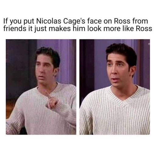 minus-squareFoxyFerengi@startrek.websitelinkfedilinkarrow-up54·16 days agoNic cage is probably one of my favorite actors because he overacts in a way that I find very entertaining. David Schwimmer looks exactly like a shorter, darker haired version of my brother. And now I’m confused about whether I actually love Nic Cage or if I miss my very goofy brother lol