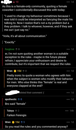 arrow-up1259arrow-down1imageDude read the rules of woman only community and decided to post anywaylemmy.dbzer0.comSchwertImStein@lemmy.dbzer0.com to Mildly Infuriating@lemmy.worldEnglish · edit-21 month agomessage-square327linkfedilink