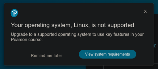 Pearson is a testing company. They use all sorts of sketchy shit under the guise of anti-cheating. Much of that requires specific plug-ins and stuff that only work in Windows.