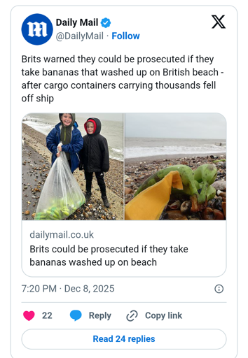 They drive to the beach and frantically start picking up bananas, in a race against time and decomposition.