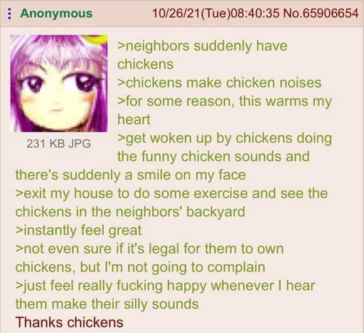 arrow-up1458arrow-down1imageAnon's neighbors have chickenssh.itjust.workssorghum@sh.itjust.works to Lemmy Be Wholesome@lemmy.world · 3 months agomessage-square42linkfedilinkfile-text