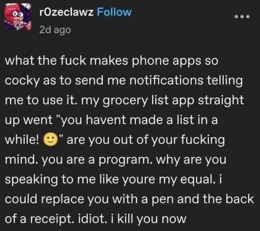 Notifications are the way an app reminds me it needs to be immediately uninstalled.
