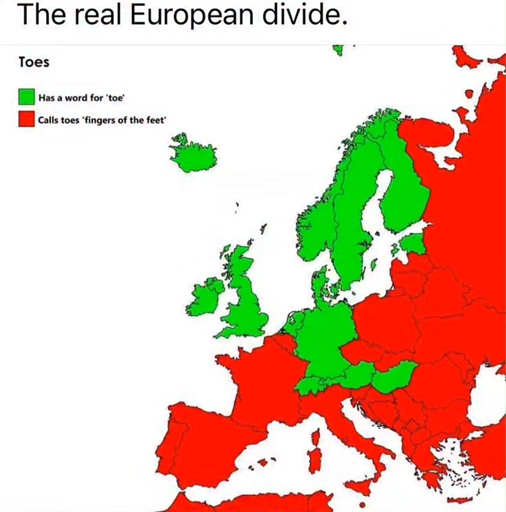 I suspected it was rage bait, starting with the British isles being coloured green, despite the existence of the word ‘toe’ there.