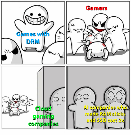 So the net result is you obtain one fancy shrouded box from Lenovo, or you purchase two fancy shrouded boxes and plug them together, and you call the result a “PC”. And then on the software side it’s a terminal for a Microsoft account, which you use to run a client for fetching from Steam, which you use to load client software for talking to live services. And now the people orchestrating all this are wondering why they bother actually mailing you the boxes.