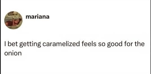 arrow-up1222arrow-down1imageCaramelize me, babylemmy.worldickplant@lemmy.world to Lemmy Shitpost@lemmy.world · 26 days agomessage-square5linkfedilink