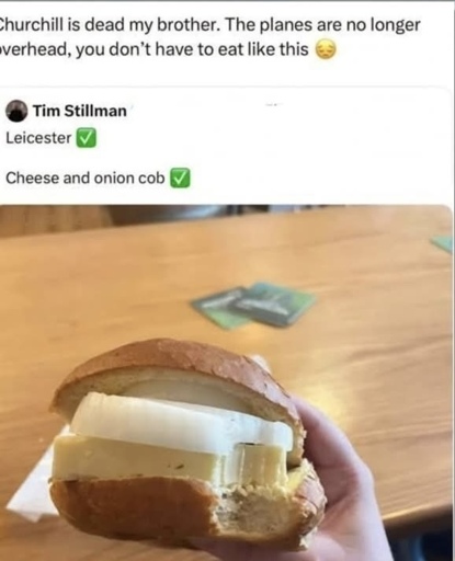 I like how you look at a picture of a dude eating a raw onion and a slab of cheese on a roll and think “fucking Americans.”