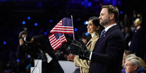 The vice president attended the opening ceremony in Milan, where people also protested the presence of US Immigration and Customs Enforcement agents at the Winter Olympics.