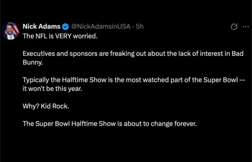Every Super Bowl there is a competing halftime show from other channels or websites. This year we have right wing lunatics acting like they’re the first and only ones to do so. Maybe year they’re do a puppy killing bowl to rival the regular one since we all know how much they love doing that.