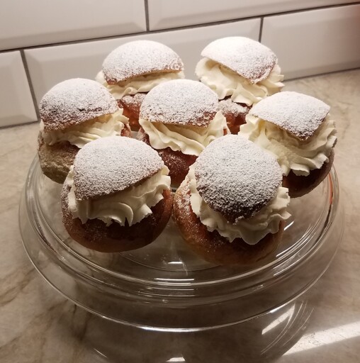 minus-squareBen@feddit.dklinkfedilinkEnglisharrow-up4·28 days agoThe swedish one has almond creme filling. Its not often i see this type of fastalavnsbolle, i mostly see the closed type. is it marmelade or the yellow cake creme that is used in the whipped creame type?