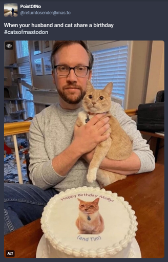 The joke could also be on the wife depending on the perspective. Kinda in the Mrs Hyacinth kind of way. We don’t laugh at Richard for being oppressed and abused by his wife. We laugh at her for being such an insufferable dummy. That’s the type of joke I got out of this birthday picture. A Mrs Hyacinth joke.