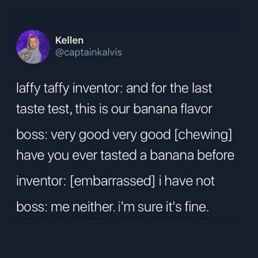 Ooooh I get to be the know it all asshole who says this and the runts flavor banana don’t taste like banana to us because we’re used to the modern dominant banana cultivar, the Cavandish, while the inventor of Runts and Laffy Taffy were familiar with the then dominant banana cultivar, the Gros Michele!