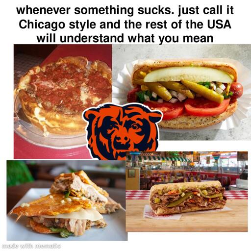 Food IN Chicago is good. The use of “Chicago style” outside of Chicago is largely a label for “this shit sucks.”