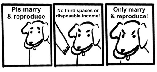 The ruling class want church to be our third space but every church my family dragged me to as a teen everyone was either 30+ years older than me or single digit ages.