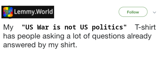 minus-square☂️-@lemmy.mllinkfedilinkarrow-up6·28 days agoholy shit, libs will trump bad all day until they have to talk about all the imperialism they do.