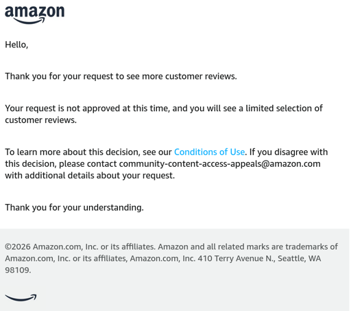 So that’s actually interesting though. I’m not necessarily condoning this behavior. But if they have identified that unscrupulous, fraudulent outside parties are potentially manipulating the reviews, and that is what’s causing Amazon to block the reviews, then that might actually be a beneficial move on their part. It’s Amazon, so I’m inclined to think they are the ones behaving badly, but this is at least a possibility.